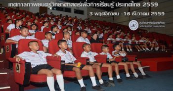วันพฤหัสบดีที่ 22 พฤศจิกายน 2559 ศูนย์วิทยาศาสตร์เพื่อการศึกษา (ท้องฟ้าจำลองกรุงเทพ) สำนักงาน กศน. จัดกิจกรรมรวมพลังเพื่อน้อมถวายพระบาทสมเด็จพระเจ้าอยู่หัว รัชกาลที่ 9 ในเวลา 08:00 น. โดยมีเจ้าหน้าที่ศูนย์วิทยาศาสตร์เพื่อการศึกษา ศูนย์การศึกษานอกระบบและการศึกษาตามอัธยาศัย เขตคลองเตย และสถาบันการศึกษาทางไกล ร่วมร้องเพลงชาติ กล่าวปฏิญาณตนเบื้องหน้าพระบรมฉายาลักษณ์ พระบาทสมเด็จพระเจ้าอยู่หัว รัชกาลที่ 9 จากนั้น ร่วมร้องเพลงสรรเสริญพระบารมี และยืนสงบนิ่ง เป็นเวลา 89 วินาที ณ บริเวณลานอิฐแดง ด้านหน้าอาคารพิพิธภัณฑ์วิทยาศาสตร์ หลังเสร็จพิธีการ ได้ร่วมกันทำความสะอาดบริเวณโดยรอบศูนย์วิทยาศาสตร์เพื่อการศึกษา ชมภาพกิจกรรมรวมพลังเพื่อน้อมถวายพระบาทสมเด็จพระเจ้าอยู่หัว รัชกาลที่ 9 (22 พฤศจิกายน 2559)