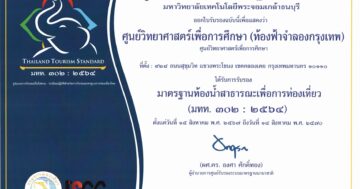 ศูนย์วิทยาศาสตร์เพื่อการศึกษา ได้รับการรับรองมาตรฐานห้องน้ำสาธารณะเพื่อการท่องเที่ยว (มทท. 302 : 2564)
