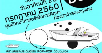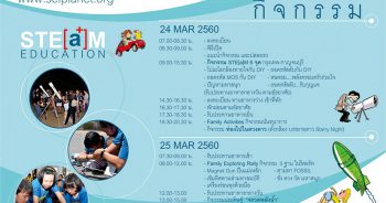 ศูนย์วิทยาศาสตร์เพื่อการศึกษา (ท้องฟ้าจำลองกรุงเทพ) สำนักงาน กศน. จัดโครงการฝึกอบรมเชิงปฏิบัติการ การสร้างสื่อการเรียนการสอนวิทยาศาสตร์แนวบูรณาการสำหรับเด็กปฐมวัย เหมาะสำหรับครูผู้สอน หรือผู้เกี่ยวข้องในการจัดการเรียนการสอนเด็กปฐมวัย เพื่อมุ่งให้ผู้สอนมีความเข้าใจและเห็นถึงความสำคัญของการสร้างสื่อการสอนวิทยาศาสตร์ที่เหมาะสมกับระดับอายุของผู้เรียน และสอดคล้องกับพัฒนาการของผู้เรียน และเพิ่มศักยภาพผู้สอนให้สามารถสร้างสื่อการสอนวิทยาศาสตร์สำหรับเด็กปฐมวัยได้ด้วยตนเอง โครงการฝึกอบรมเชิงปฏิบัติการ การสร้างสื่อการเรียนการสอนวิทยาศาสตร์แนวบูรณาการสำหรับเด็กปฐมวัย จัดการอบรมฯ ระหว่างวันที่ 25 – 26 มกราคม 2561 ณ ห้องประชุม ชั้น 7 อาคาร 4 ศูนย์วิทยาศาสตร์เพื่อการศึกษา ค่าลงทะเบียนคนละ 1,200 บาท เปิดรับสมัครครู อาจารย์ หรือผู้เกี่ยวข้องในการจัดการเรียนการสอนสำหรับเด็กปฐมวัย จำนวน 40 คน ผู้สนใจเข้ารับการอบรมในโครงการฯ นี้ สอบถามข้อมูลเพิ่มเติมได้ที่ กลุ่มการตลาดและประชาสัมพันธ์ โทร. 0 2392 5951 – 5 ต่อ 2019 หรือ 2027 และโทร./โทรสาร 0 2392 0508 หรือดำเนินการสมัครเข้าร่วมการอบรมฯ ได้ตามขั้นตอน ดังนี้ 1. ดาวน์โหลดใบสมัคร และแบบฟอร์มการลงทะเบียนการเข้ากิจกรรมค่าย/อบรมผ่านเคาน์เตอร์ธนาคารจากไฟล์ดาวน์โหลดเอกสารด้านล่าง 2. นำแบบฟอร์มการลงทะเบียนการเข้ากิจกรรมค่าย/อบรมผ่านเคาน์เตอร์ธนาคาร ไปชำระเงินค่าลงทะเบียนโดยทำรายการผ่านเคาน์เตอร์ธนาคารกรุงไทย (ทุกสาขาทั่วประเทศ) ภายในระยะเวลาที่กำหนด ธนาคารจะเริ่มรับชำระเงินค่าลงทะเบียนโครงการฝึกอบรมเชิงปฏิบัติการ การสร้างสื่อการเรียนการสอนวิทยาศาสตร์แนวบูรณาการสำหรับเด็กปฐมวัยตั้งแต่ วันที่ […]