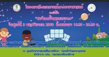 ศูนย์วิทยาศาสตร์เพื่อการศึกษา (ท้องฟ้าจำลองกรุงเทพ) สำนักงาน กศน. โดยกลุ่มวิทยาศาสตร์ปฐมวัย จัดกิจกรรมวิทยาศาสตร์เสริมการเรียนรู้แนวบูรณาการ (วิทยาศาสตร์และวัฒนธรรม) สำหรับเด็กปฐมวัย ชุด แสง เรื่อง “สายรุ้งล่องหน” เพื่อสร้างเสริมให้ผู้เรียนมีความเข้าใจเรื่อง แสง สี และเพื่อสร้างเจตคติที่ดีต่อการเรียนรู้วิทยาศาสตร์ โดยมีความสอดคล้องกับการเรียนรู้ตามนโยบายของรัฐบาล ที่ให้ผู้เรียนได้ลงมือปฏิบัติ ได้เห็น ได้สัมผ้ส และได้คิด ด้วยการเรียนรู้ผ่านสื่อการเรียนรู้ประเภทละครหุ่นและสื่อมัลติมีเดีย และเสริมด้วยทำบทปฏิบัติการในฐานกิจกรรม กิจกรรมวิทยาศาสตร์เสริมการเรียนรู้แนวบูรณาการฯ เรื่อง “สายรุ้งล่องหน” เป็นการเรียนรู้เรื่อง “แสง” ได้แก่ การเดินทางของแสง การรวมแสง การกระจายแสง การสะท้อนแสง และการหักเหของแสง ใช้เวลาประมาณ 2 ชั่วโมง/รอบ ให้บริการวันละ 2 รอบ คือ รอบเช้าและรอบบ่าย ในจำนวนนักเรียน 90 คน/รอบ จัดกิจกรรม ณ นิทรรศการเมืองเด็ก ชั้น6 อาคาร 4 ศูนย์วิทยาศาสตร์เพื่อการศึกษา (ท้องฟ้าจำลองกรุงเทพ) มีค่าใช้จ่ายสำหรับนักเรียน คนละ 40 บาท ขอเชิญโรงเรียนที่สนใจให้นักเรียนในสังกัดของท่านร่วมกิจกรรมวิทยาศาสตร์เสริมการเรียนรู้แนวบูรณาการ (วิทยาศาสตร์และวัฒนธรรม) สำหรับเด็กปฐมวัย ชุด แสง เรื่อง “สายรุ้งล่องหน” ติดต่อจองร่วมกิจกรรมโดยดาวน์โหลดเอกสารตามลิ้งด้านล่าง หรือสอบถามข้อมูลเพิ่มเติมได้ที่ กลุ่มพัฒนาธุรกิจและการตลาด โทร. 0 2391 0544 และ 0 2392 1773 ดาวน์โหลดเอกสารกิจกรรมวิทยาศาสตร์เสริมการเรียนรู้แนวบูรณาการ (วิทยาศาสตร์และวัฒนธรรม) สำหรับเด็กปฐมวัย ชุด แสง เรื่อง “สายรุ้งล่องหน” […]