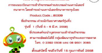 ตามที่ ศูนย์วิทยาศาสตร์เพื่อการศึกษา ร่วมกับตัวแทนศูนย์วิทยาศาสตร์เพื่อการศึกษาเครือข่ายในแต่ละภูมิภาค จำนวน 5 แห่ง องค์การพิพิธภัณฑ์วิทยาศาสตร์แห่งชาติ สมาคมวิทยาศาสตร์แห่งประเทศไทยในพระบรมราชูปถัมภ์ และมูลนิธิโกลบอลเฮลท์แอนด์เอ็ดดูเคชั่น จัดการประกวดโครงงานวิทยาศาสตร์ด้านธรรมชาติวิทยา (Thailand Natural History Day 2015) ภายใต้หัวข้อ มหัศจรรย์ทางธรรมชาติ (The Nature Great Event) และปิดรับสมัครแล้ว เมื่อวันจันทร์ที่ 16 กุมภาพันธ์ 2558 ศูนย์วิทยาศาสตร์เพื่อการศึกษา ขอประกาศรายชื่อทีมที่ผ่านเข้ารอบคัดเลือกภาคกลาง ในการประกวดโครงงานวิทยาศาสตร์ด้านธรรมชาติวิทยา (Thailand Natural History Day 2015) หัวข้อ มหัศจรรย์ทางธรรมชาติ (The Nature Great Event) ดังมีรายชื่อต่อไปนี้ ดาวน์โหลดรายชื่อทีมที่ผ่านเข้ารอบคัดเลือกภาคกลาง