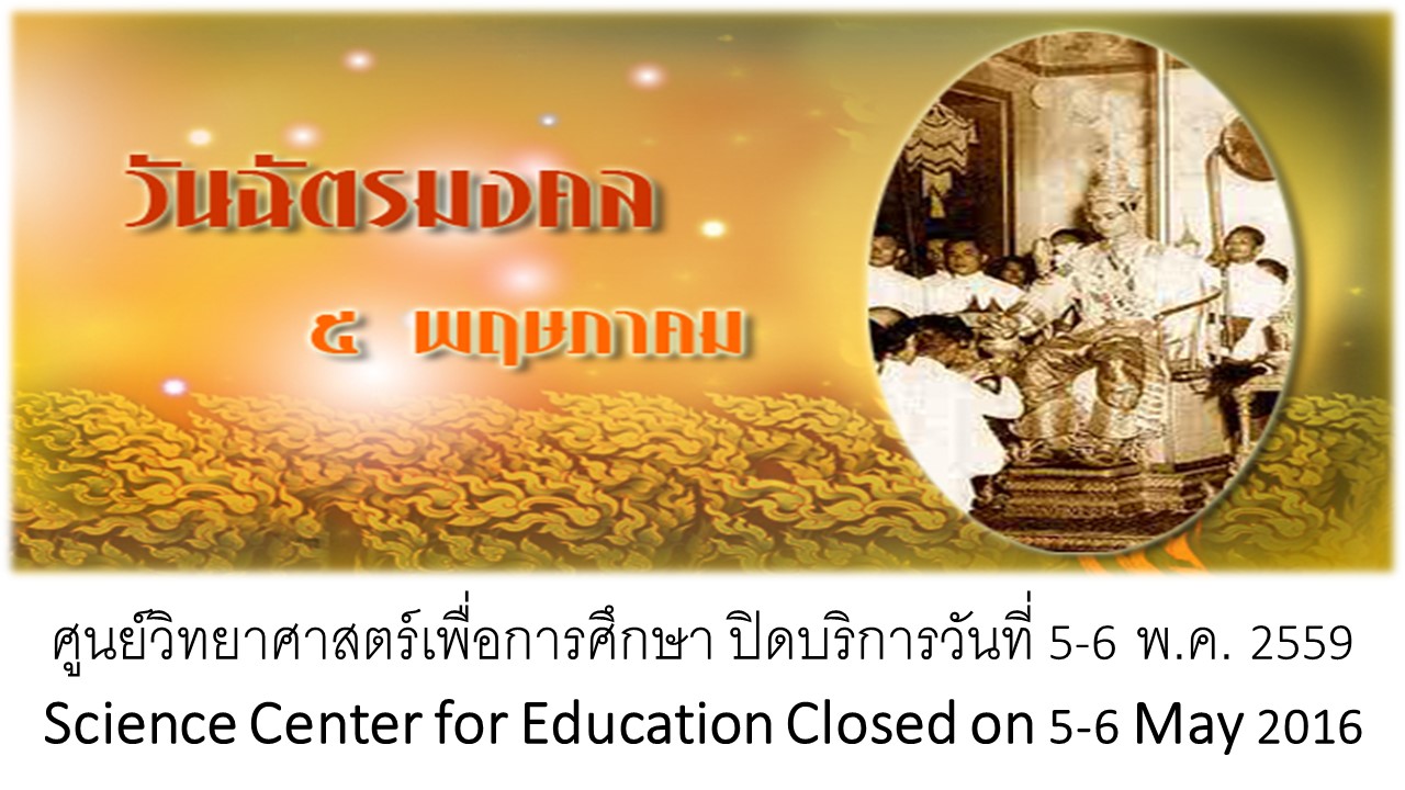 ศูนย์วิทยาศาสตร์เพื่อการศึกษาปิดบริการวันที่ 5-6 พฤษภาคม 2559