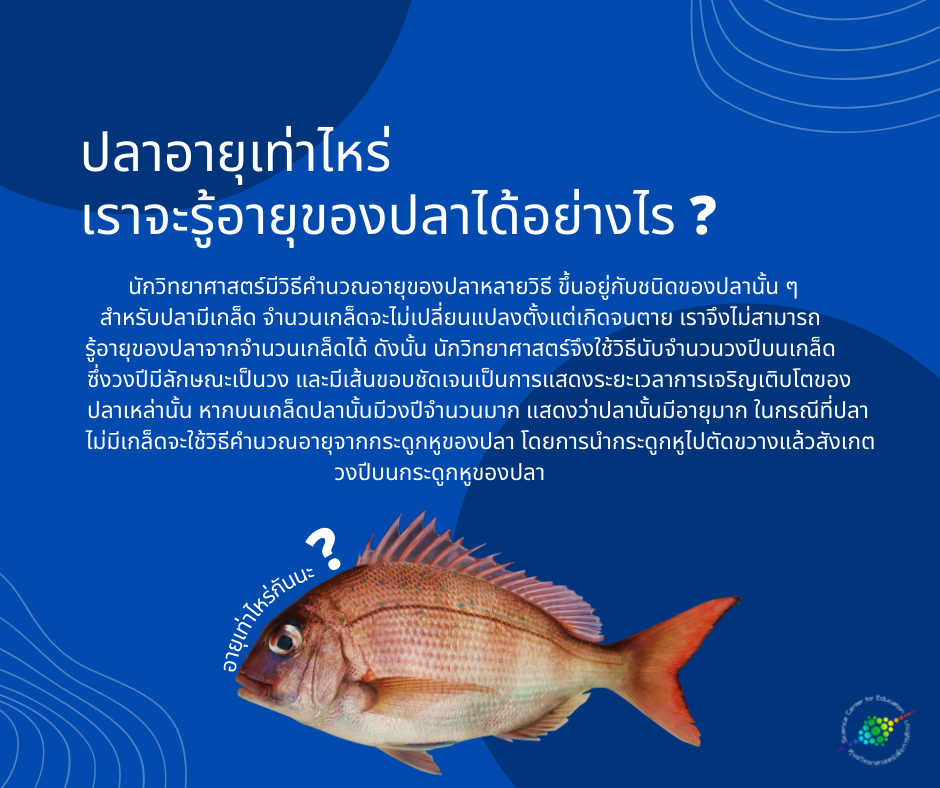 เรารู้อายุของมนุษย์และสัตว์ได้ด้วยการคำนวณจากวันเดือนปีเกิด ส่วนอายุของต้นไม้ก็คำนวณได้จากวงปีในเนื้อไม้ของต้นไม้นั้น ๆ ถ้าเราอยากรู้อายุของปลา จะรู้ได้จากอะไร