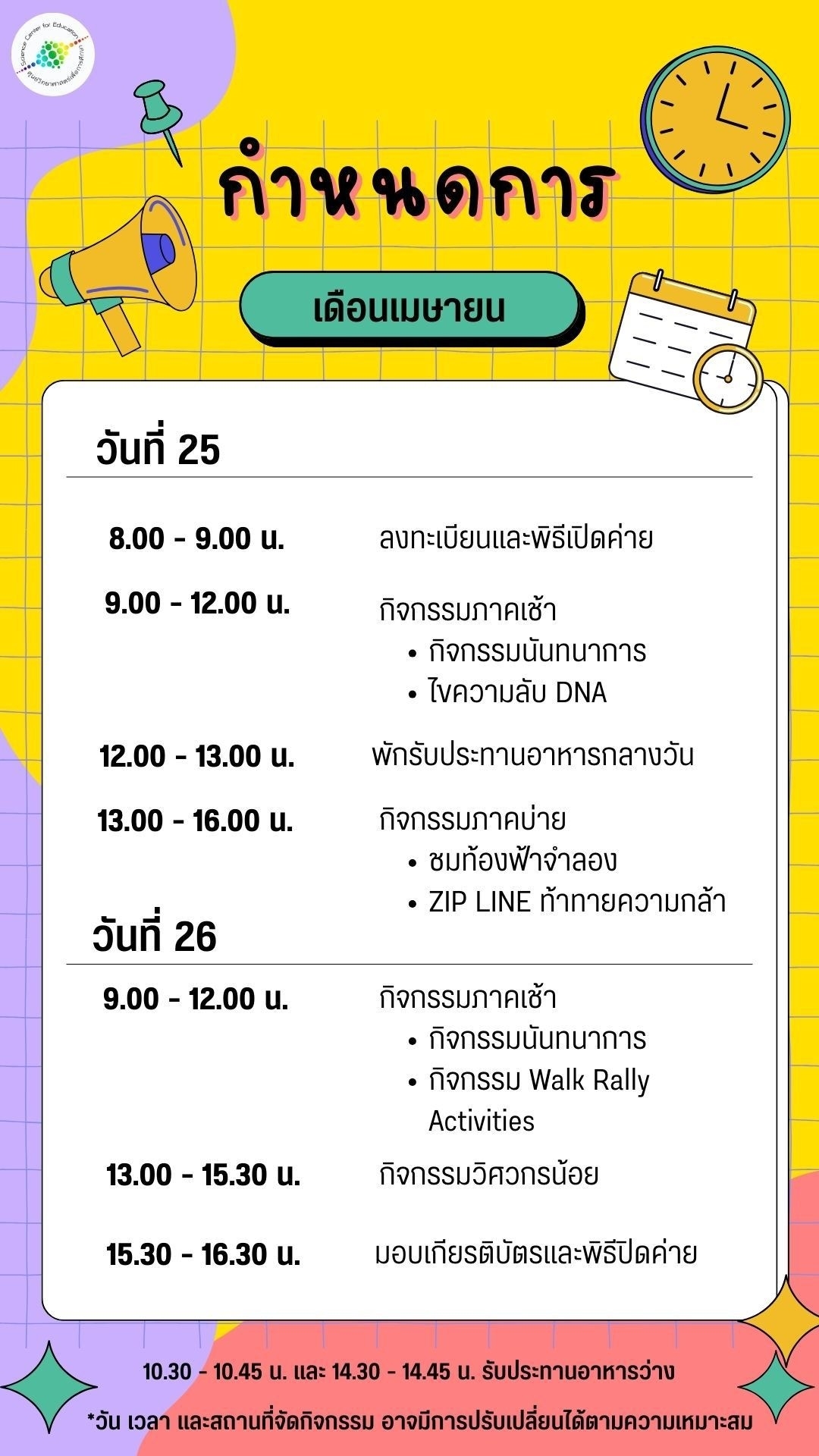 กำหนดการค่ายสนุกกับวิทยาศาสตร์