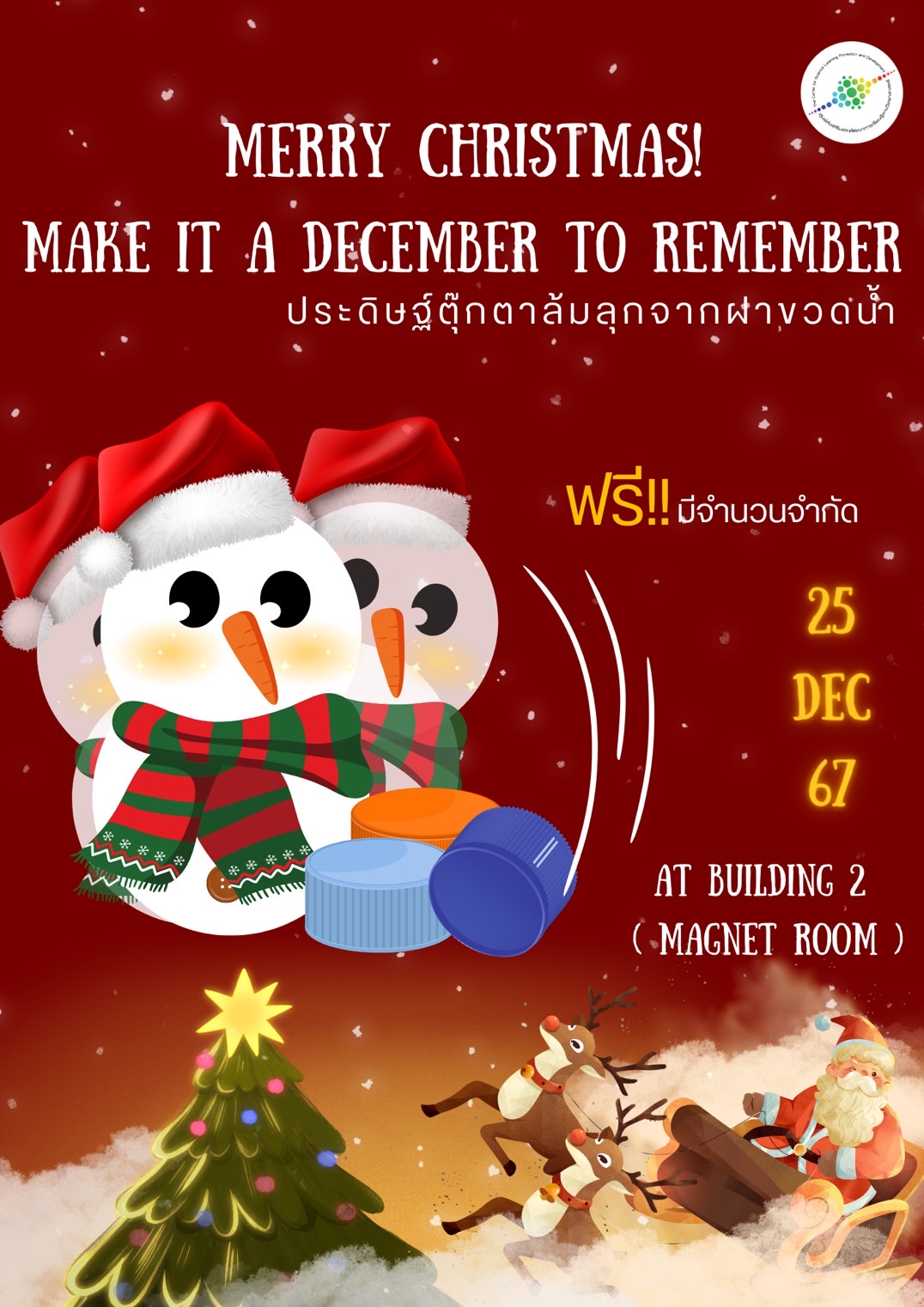 ศูนย์ส่งเสริมและพัฒนาการเรียนรู้ทางวิทยาศาสตร์ ส่วนวิชาการ กลุ่มกิจกรรมการศึกษา จัดกิจกรรมพิเศษ โดยไม่เสียค่าใช้จ่าย Merry Christmas! Make it a December to Remember ในวันที่ 25 ธันวาคม 2567 ขอเชิญชวนร่วมกิจกรรมพิเศษในวันคริสตร์มาส ประดิษฐ์ตุ๊กตาล้มลุกจากฝาขวดน้ำโดยไม่เสียค่าใช้จ่าย (มีจำนวนจำกัด!) ณ ห้อง Magnet ชั้น 1 อาคาร 2 สำหรับลูกค้าที่ซื้อบัตรเข้าชมนิทรรศการเท่านั้น
