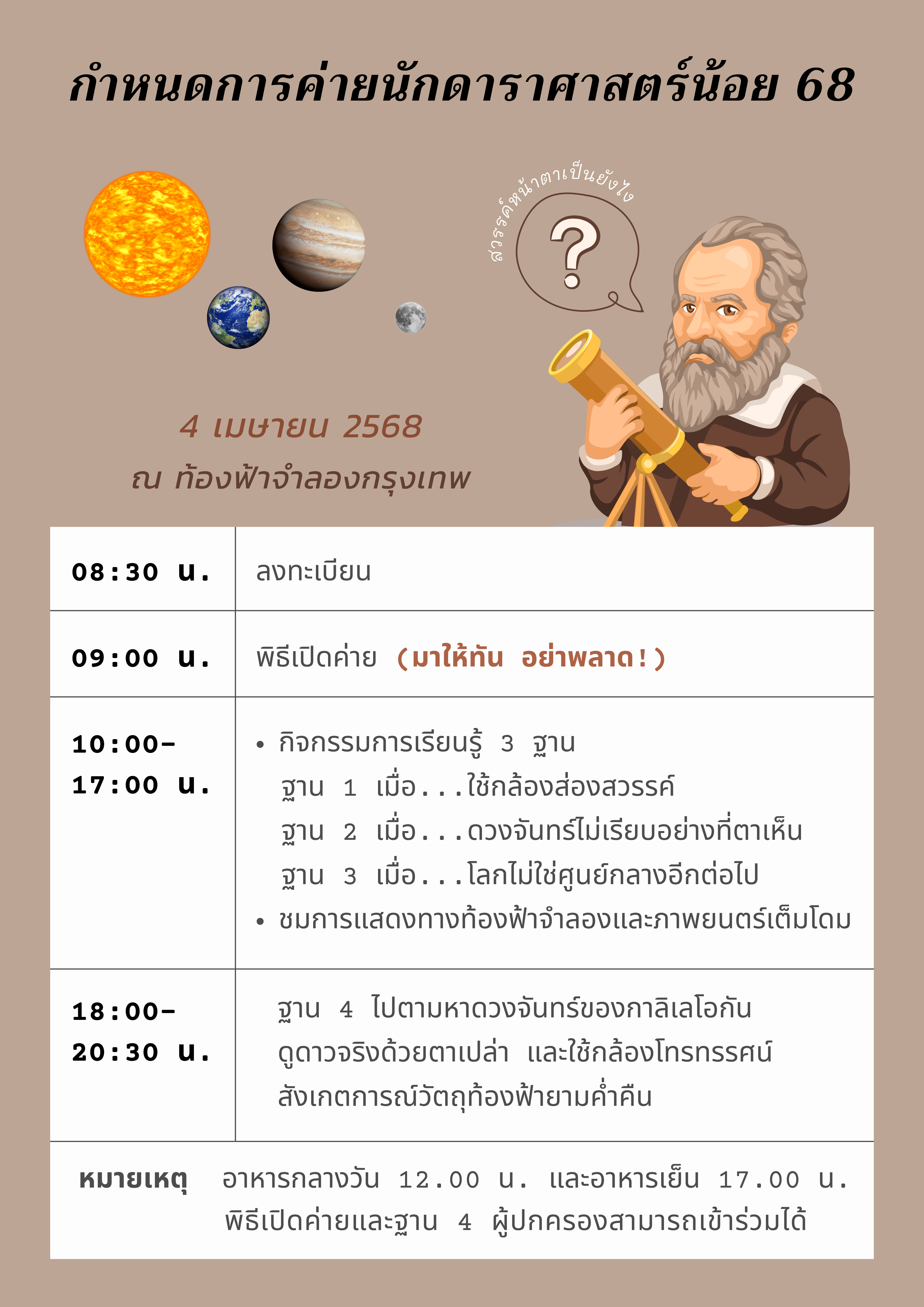 กำหนดการค่ายนักดาราศาสตร์น้อย