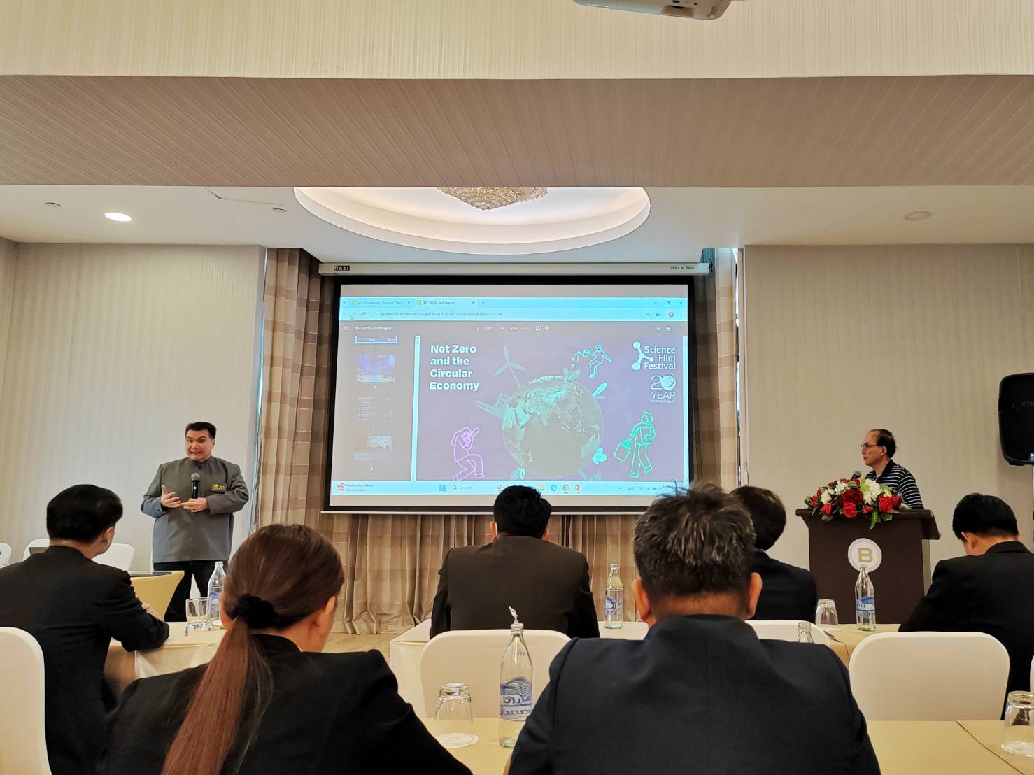 18 กุมภาพันธ์ 2568 นายดิษพล มาตุอำพันวงศ์ ผู้อำนวยการศูนย์ส่งเสริมและพัฒนาการเรียนรู้ทางวิทยาศาสตร์ มอบหมายให้นายชรินทร์ รู้อ่าน หัวหน้างานกิจกรรมการเรียนรู้และบริการ และนางนาริฐา พุ่มดอกไม้ นักวิชาการศึกษาปฏิบัติการเข้าร่วมประชุมสรุปผลการดำเนินงานเทศกาลภาพยนตร์วิทยาศาสตร์เพื่อการเรียนรู้ (ครั้งที่ 20) ณ ห้องประชุม The Lounge ชั้น 10 โรงแรม เดอะ เบอร์เคลีย์ ประตูน้ำ กรุงเทพมหานคร