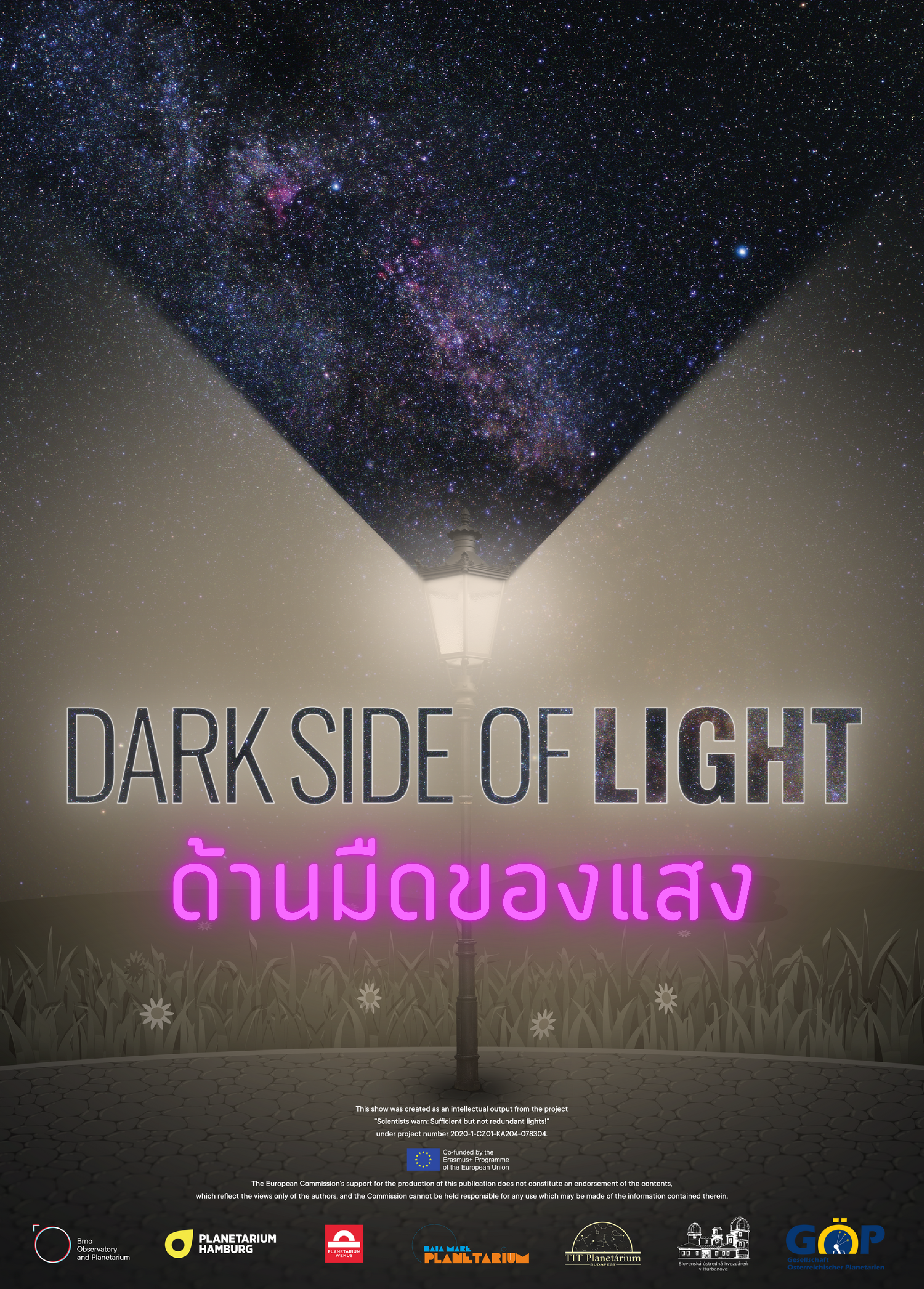 ภาพยนตร์เต็มโดม เดือนพฤษภาคม 2568 เรื่อง ด้านมืดของแสง (Dark Side of Light) ภาพยนตร์ความยาว 22 นาที เสนอเนื้อหาเกี่ยวกับการใช้ชีวิตของมนุษย์ท่ามกลางแสงประดิษฐ์ ชีวิตของเราขาดแสงไม่ได้ แต่สิ่งที่ดูงดงามหรือสว่างไสวที่สุด ก็อาจมีข้อเสียหรือผลกระทบที่ไม่คาดคิดแฝงอยู่ แสงประดิษฐ์ส่งผลร้ายหลายประการ พวกเราจะแก้ปัญหานี้ได้อย่างไร?