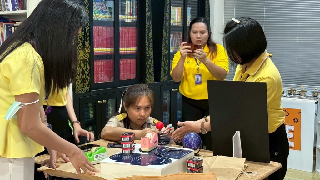 วันที่ 14 กรกฎาคม 2568 ศูนย์ส่งเสริมและพัฒนาการเรียนรู้ทางวิทยาศาสตร์ กรมส่งเสริมการเรียนรู้ เดินหน้าขับเคลื่อนโครงการ Science Smart Corner มุมวิทยาศาสตร์น่ารู้กับห้องสมุดประชาชน สกร. ณ ห้องสมุดประชาชน “เฉลิมราชกุมารี” เขตคลองสามวา กรุงเทพมหานคร ส่งมอบสื่อการเรียนรู้ อาทิ แผนที่ดาว บอร์ดเกมและชุดทดลองด้านพลังงานไฟฟ้า พร้อมให้คำแนะนำแนวทางการจัดกิจกรรมให้กับห้องสมุดประชาชน “เฉลิมราชกุมารี” เขตคลองสามวา โดยมีนางวันเพ็ญ แจ่มอนงค์ ผู้อำนวยการศูนย์ส่งเสริมการเรียนรู้ระดับเขตคลองสามวา พร้อมครูและบรรณารักษ์ ให้การต้อนรับและร่วมรับมอบอย่างอบอุ่น