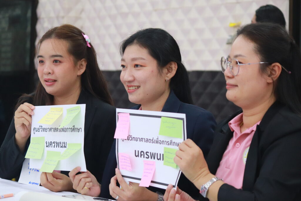 นอกจากนี้ ยังมีกิจกรรม “Think and Do Together” ซึ่งผู้เข้าอบรมได้นำเสนอจุดเด่น ไฮไลต์ กิจกรรมที่เป็นเอกลักษณ์ของศูนย์วิทยาศาสตร์เพื่อการศึกษาแต่ละแห่ง ทำให้เข้าใจบริบทการทำงานของแต่ละพื้นที่ พร้อมแลกเปลี่ยนแนวทางพัฒนาความร่วมมือระหว่างกลุ่มศูนย์วิทยาศาสตร์เพื่อการศึกษา เพื่อให้มีกลไกการทำงานที่สอดประสานกันอย่างมีประสิทธิภาพและสร้างระบบการทำงานเป็นทีมที่เข้มแข็ง อันจะนำไปสู่การพัฒนาศักยภาพของหน่วยงานในภาพรวมอย่างเป็นรูปธรรม