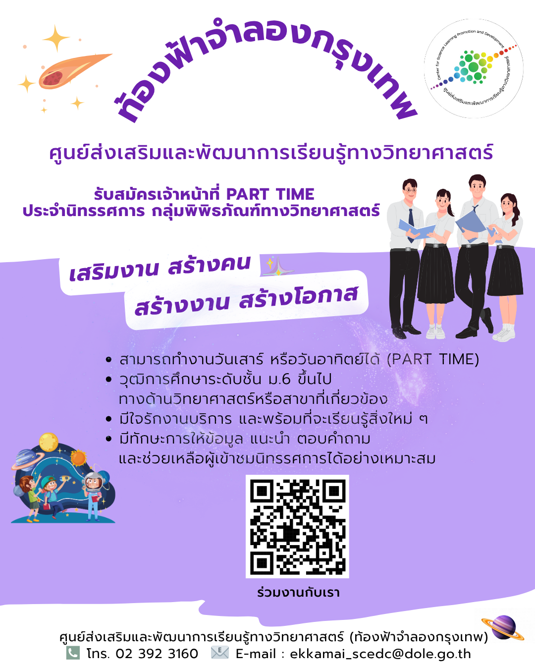 ขอเชิญเข้าร่วมการประกวดแข่งขันนวัตกรรมด้านวิทยาศาสตร์สำหรับผู้สูงวัย “แฮปปี้…สูงวัย” ระดับประเทศ ประจำปีงบประมาณ พ.ศ. 2569 ประเภท สิ่งประดิษฐ์เพื่อช่วยเสริมคุณภาพชีวิตด้านการประกอบอาชีพสำหรับผู้สูงวัย จัดโดยศูนย์ส่งเสริมและพัฒนาการเรียนรู้ทางวิทยาศาสตร์ เพื่อส่งเสริม สนับสนุนและดำเนินการจัดกิจกรรมการเรียนรู้ทางด้านวิทยาศาสตร์และเทคโนโลยี เสริมสร้างทักษะให้กับกลุ่มผู้สูงวัยอย่างต่อเนื่อง โดยเปิดรับผลงานจากบุคคลทั่วไปผู้มีอายุตั้งแต่ 55 ปีขึ้นไป (ต้องผ่านการประกวดระดับพื้นที่จากกลุ่มศูนย์วิทยาศาสตร์เพื่อการศึกษา) ซึ่งผู้ชนะเลิศจะได้รับเงินรางวัล 13,000 บาท พร้อมโล่และเกียรติบัตร และยังมีรางวัลชมเชยอีก 17 รางวัล รวมมูลค่ากว่า 89,000 บาท เงื่อนไขการสมัคร หลักฐานการสมัคร ประกอบด้วย กำหนดการประกวด หมายเหตุ สอบถามรายละเอียด/ติดต่อผู้ประสานงานโครงการ FacebookFacebookXTwitterLINELine