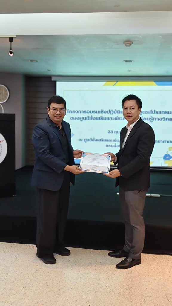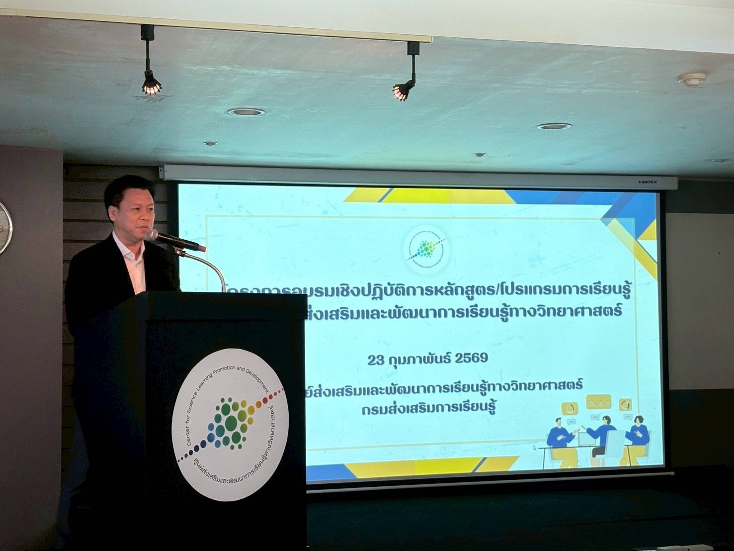 23 กุมภาพันธ์ 2569 ศูนย์ส่งเสริมและพัฒนาการเรียนรู้ทางวิทยาศาสตร์ กรมส่งเสริมการเรียนรู้ จัดโครงการอบรมเชิงปฏิบัติการหลักสูตร/โปรแกรมการเรียนรู้ของศูนย์ฯ ณ ห้องปฏิบัติการนิวเคลียส ชั้น 7 อาคาร 4 ศูนย์ส่งเสริมและพัฒนาการเรียนรู้ทางวิทยาศาสตร์ โดยนายดิษพล มาตุอำพันวงศ์ ผู้อำนวยการศูนย์ส่งเสริมและพัฒนาการเรียนรู้ทางวิทยาศาสตร์ ให้เกียรติเป็นประธานในพิธีเปิดโครงการ