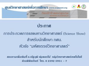 ขอเชิญเข้าร่วมการประกวดแข่งขันนวัตกรรมด้านวิทยาศาสตร์สำหรับผู้สูงวัย “แฮปปี้…สูงวัย” ระดับประเทศ ประจำปีงบประมาณ พ.ศ. 2569 ประเภท สิ่งประดิษฐ์เพื่อช่วยเสริมคุณภาพชีวิตด้านการประกอบอาชีพสำหรับผู้สูงวัย จัดโดยศูนย์ส่งเสริมและพัฒนาการเรียนรู้ทางวิทยาศาสตร์ เพื่อส่งเสริม สนับสนุนและดำเนินการจัดกิจกรรมการเรียนรู้ทางด้านวิทยาศาสตร์และเทคโนโลยี เสริมสร้างทักษะให้กับกลุ่มผู้สูงวัยอย่างต่อเนื่อง โดยเปิดรับผลงานจากบุคคลทั่วไปผู้มีอายุตั้งแต่ 55 ปีขึ้นไป (ต้องผ่านการประกวดระดับพื้นที่จากกลุ่มศูนย์วิทยาศาสตร์เพื่อการศึกษา) ซึ่งผู้ชนะเลิศจะได้รับเงินรางวัล 13,000 บาท พร้อมโล่และเกียรติบัตร และยังมีรางวัลชมเชยอีก 17 รางวัล รวมมูลค่ากว่า 89,000 บาท เงื่อนไขการสมัคร หลักฐานการสมัคร ประกอบด้วย กำหนดการประกวด หมายเหตุ สอบถามรายละเอียด/ติดต่อผู้ประสานงานโครงการ FacebookFacebookXTwitterLINELine