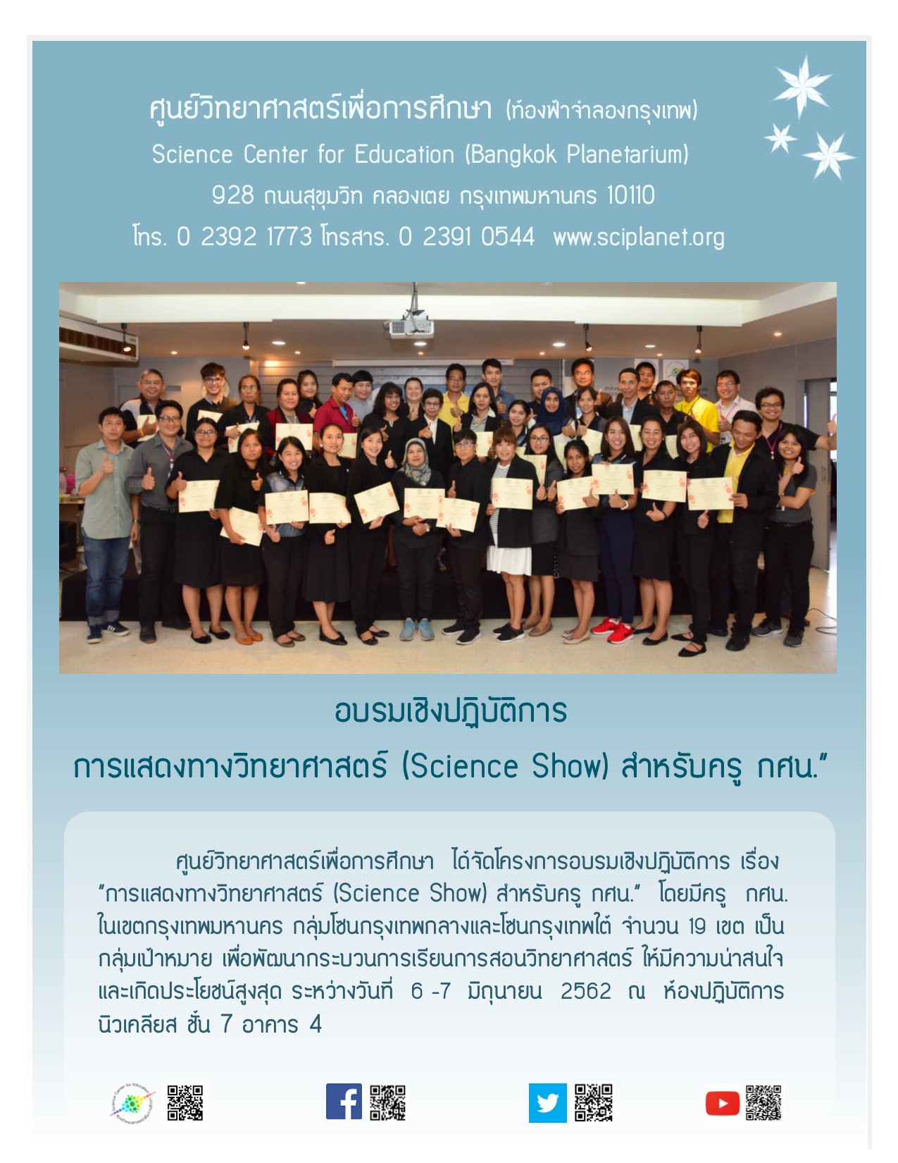ค่ายนักดาราศาสตร์น้อย ค่าย 1 วัน เช้าจรดค่ำกับภารกิจตามหาดาวเวทมนตร์ ผ่านฐานกิจกรรมการเรียนรู้ด้านดาราศาสตร์ ซึ่งช่วยให้เข้าใจเอกภพมากขึ้น นอกจากนี้จะได้มีโอกาสสัมผัสกับประสบการณ์การดูดาวจริงด้วยตาเปล่า และการติดตั้งกล้องโทรทรรศน์เพื่อสังเกตวัตถุท้องฟ้าที่สวยงามยามค่ำคืน กลุ่มเป้าหมาย วันที่จัดกิจกรรม วันที่รับสมัครพร้อมชำระเงิน วันที่ประกาศรายชื่อผู้มีสิทธ์เข้าร่วมกิจกรรม สถานที่จัดกิจกรรม ค่าลงทะเบียน ช่องทางการชำระเงิน กำหนดการค่าย ขั้นตอนการสมัคร สอบถามข้อมูลเพิ่มเติมได้ที่ หมายเหตุ FacebookFacebookXTwitterLINELine