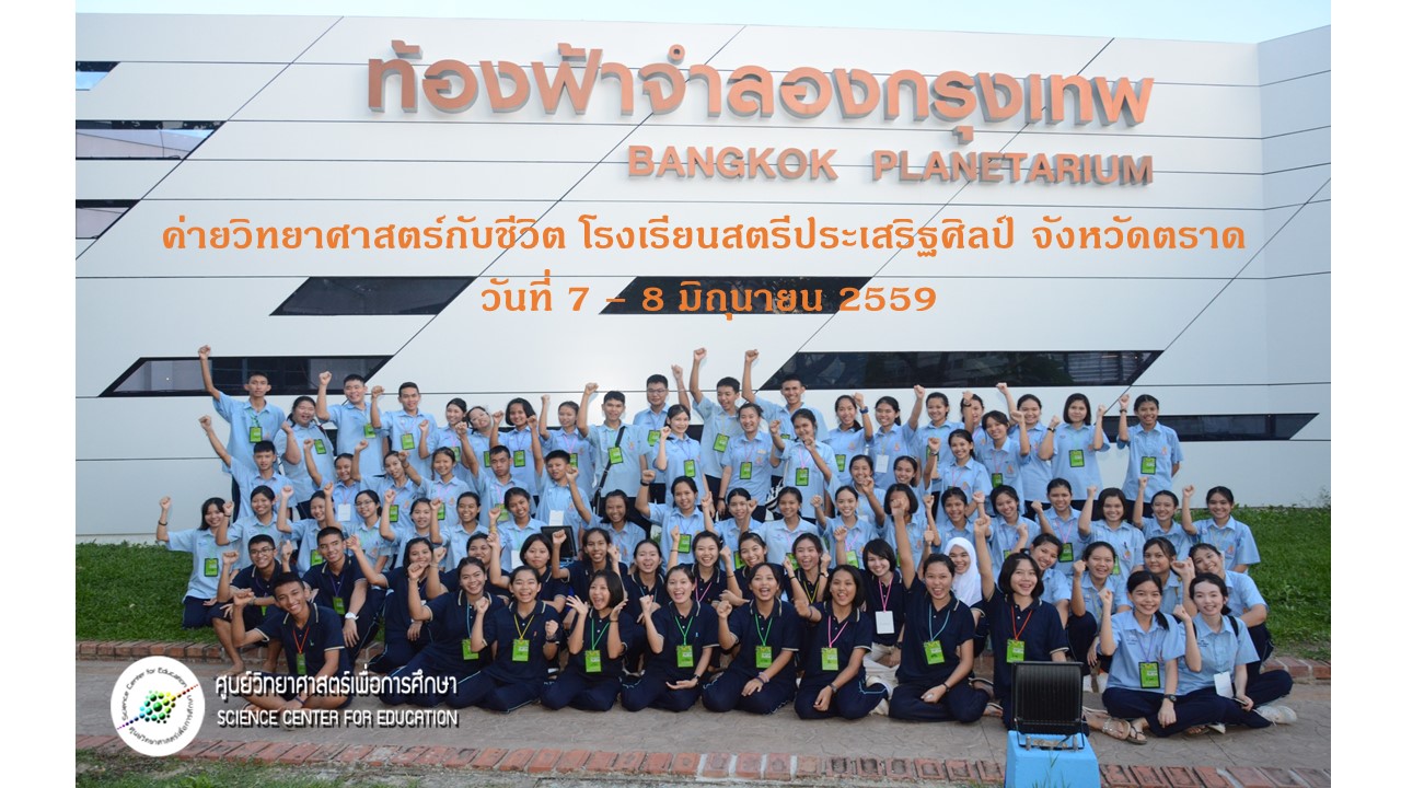 กิจกรรมค่ายวิทยาศาสตร์กับชีวิตของโรงเรียนสตรีประเสริฐศิลป์ จัดขึ้นระหว่าง วันที่ 7 – 8 มิถุนายน 2559 ณ ศูนย์วิทยาศาสตร์เพื่อการศึกษา (ท้องฟ้าจำลองกรุงเทพ) มีสมาชิกค่ายฯ เป็นนักเรียนชั้นมัธยมศึกษาปีที่ 4 – 6 ของโรงเรียนสตรีประเสริฐศิลป์ จังหวัดตราด ในระยะเวลา 2 วัน 1 คืน สมาชิกค่ายฯ ได้เรียนรู้วิทยาศาสตร์ด้วยกิจกรรมปฏิบัติการจรวดขวดน้ำ และจุลินทรีย์ก้นครัว จุดประกายด้านดาราศาสตร์กับการแสดงท้องฟ้าจำลอง และกิจกรรมตั้งกล้องดูดาวบนท้องฟ้าจริง วัดใจกับกิจกรรมท้าทายอย่างกิจกรรม กายแกร่ง..จิตกล้า..ท้าความสูง เด็ก ๆ ได้รับทั้งความรู้คู่ความสนุกสนาน ชมภาพกิจกรรมค่ายวิทยาศาสตร์กับชีวิตของโรงเรียนสตรีประเสริฐศิลป์