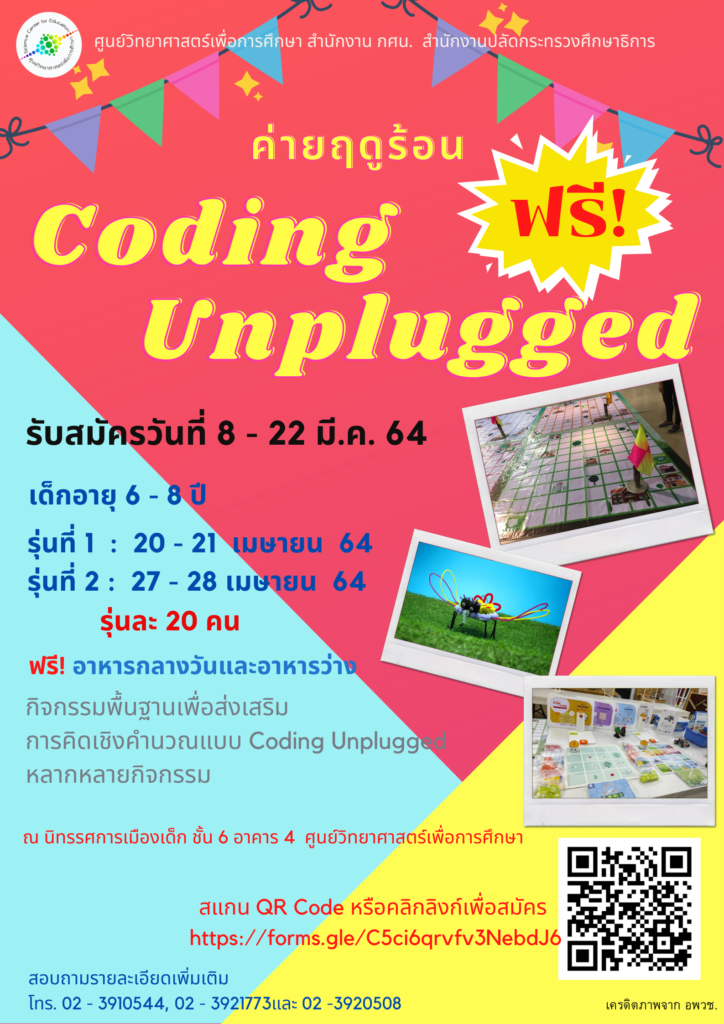 ตามที่ศูนย์วิทยาศาสตร์เพื่อการศึกษาได้ประชาสัมพันธ์กิจกรรมค่ายฤดูร้อน Summer Camp 2021 : Coding Unplugged ปี 2564 และเปิดรับสมัครตั้งแต่วันที่ 8 – 22 มีนาคม 2564 และได้มีผู้สมัครเข้าร่วมกิจกรรมครบตามจำนวนแล้วทั้ง 2 รุ่น โดยท่านสามารถตรวจสอบรายชื่อผู้มีสิทธิ์เข้าร่วมกิจกรรมค่าย Coding Unplugged ปี 2564 ได้ที่ด้านล่างนี้